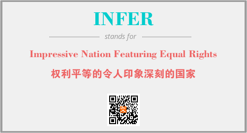 上述内容是“Impressive Nation Featuring Equal Rights”作为“INFER”的缩写,解释为“权利平等的令人印象深刻的国家”时的信息,以及英文缩略词INFER所代表的英文单词,其对应的中文拼音、详细解释以及在英文中的流行度和相关分类、应用领域及应用示例等。