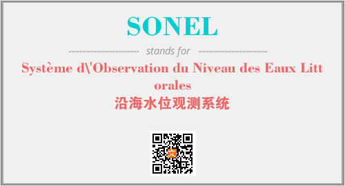 上述内容是“Système d\'Observation du Niveau des Eaux Littorales”作为“SONEL”的缩写,解释为“沿海水位观测系统”时的信息,以及英文缩略词SONEL所代表的英文单词,其对应的中文拼音、详细解释以及在英文中的流行度和相关分类、应用领域及应用示例等。