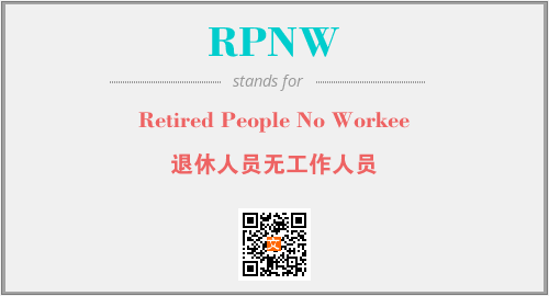 以上为Retired People No Workee英文缩略词RPNW的中文解释,以及该英文缩写在英语的流行度、分类和应用领域方面的信息。