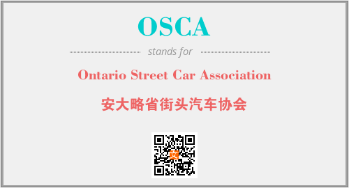 上述内容是“Ontario Street Car Association”作为“OSCA”的缩写,解释为“安大略省街头汽车协会”时的信息,以及英文缩略词OSCA所代表的英文单词,其对应的中文拼音、详细解释以及在英文中的流行度和相关分类、应用领域及应用示例等。