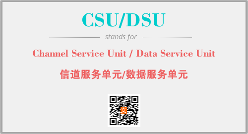 英文缩略词“CSU/DSU”经常作为“Channel Service Unit / Data Service Unit”的英文缩写来使用,中文表示:“信道服务单元/数据服务单元”。本文将详细介绍英文缩写词CSU/DSU所代表英文单词,其对应的中文拼音、详细解释以及在英语中的流行度。此外,还有关于缩略词CSU/DSU的分类、应用领域及相关应用示例等。