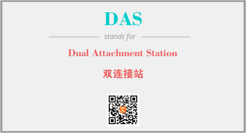 英文缩略词“DAS”经常作为“Dual Attachment Station”的英文缩写来使用,中文表示:“双连接站”。本文将详细介绍英文缩写词DAS所代表英文单词,其对应的中文拼音、详细解释以及在英语中的流行度。此外,还有关于缩略词DAS的分类、应用领域及相关应用示例等。