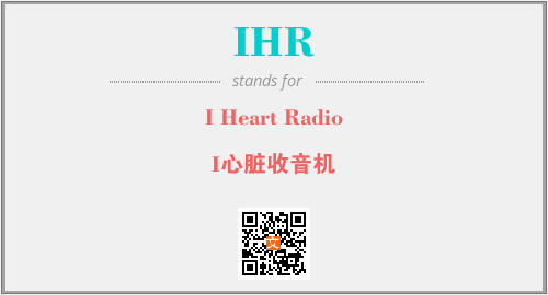英文缩略词“IHR”经常作为“I Heart Radio”的英文缩写来使用,中文表示:“I心脏收音机”。本文将详细介绍英文缩写词IHR所代表英文单词,其对应的中文拼音、详细解释以及在英语中的流行度。此外,还有关于缩略词IHR的分类、应用领域及相关应用示例等。