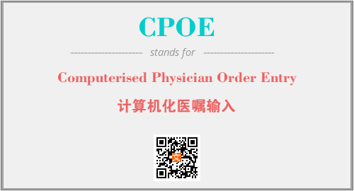 上述内容是“Computerised Physician Order Entry”作为“CPOE”的缩写,解释为“计算机化医嘱输入”时的信息,以及英文缩略词CPOE所代表的英文单词,其对应的中文拼音、详细解释以及在英文中的流行度和相关分类、应用领域及应用示例等。