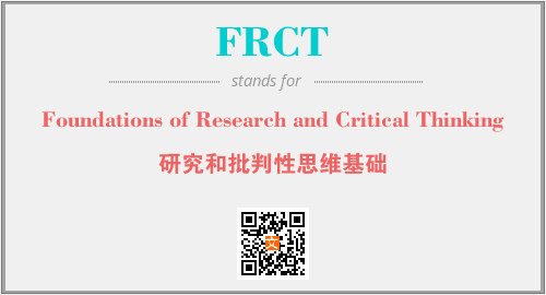 上述内容是“Foundations of Research and Critical Thinking”作为“FRCT”的缩写,解释为“研究和批判性思维基础”时的信息,以及英文缩略词FRCT所代表的英文单词,其对应的中文拼音、详细解释以及在英文中的流行度和相关分类、应用领域及应用示例等。