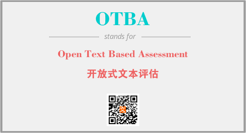英文缩略词“OTBA”经常作为“Open Text Based Assessment”的英文缩写来使用,中文表示:“开放式文本评估”。本文将详细介绍英文缩写词OTBA所代表英文单词,其对应的中文拼音、详细解释以及在英语中的流行度。此外,还有关于缩略词OTBA的分类、应用领域及相关应用示例等。