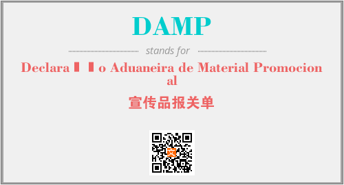 上述内容是“Declaração Aduaneira de Material Promocional”作为“DAMP”的缩写,解释为“宣传品报关单”时的信息,以及英文缩略词DAMP所代表的英文单词,其对应的中文拼音、详细解释以及在英文中的流行度和相关分类、应用领域及应用示例等。