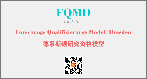 上述内容是“Forschungs Qualifizierungs Modell Dresden”作为“FQMD”的缩写,解释为“德累斯顿研究资格模型”时的信息,以及英文缩略词FQMD所代表的英文单词,其对应的中文拼音、详细解释以及在英文中的流行度和相关分类、应用领域及应用示例等。