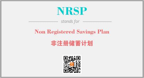 英文缩略词“NRSP”经常作为“Non Registered Savings Plan”的英文缩写来使用,中文表示:“非注册储蓄计划”。本文将详细介绍英文缩写词NRSP所代表英文单词,其对应的中文拼音、详细解释以及在英语中的流行度。此外,还有关于缩略词NRSP的分类、应用领域及相关应用示例等。