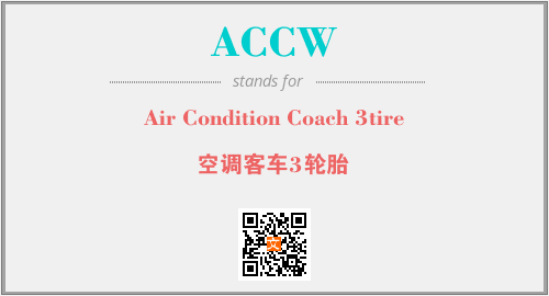 英文缩略词“ACCW”经常作为“Air Condition Coach 3tire”的英文缩写来使用,中文表示:“空调客车3轮胎”。本文将详细介绍英文缩写词ACCW所代表英文单词,其对应的中文拼音、详细解释以及在英语中的流行度。此外,还有关于缩略词ACCW的分类、应用领域及相关应用示例等。