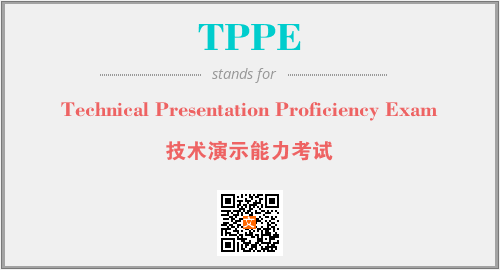 以上为Technical Presentation Proficiency Exam英文缩略词TPPE的中文解释,以及该英文缩写在英语的流行度、分类和应用领域方面的信息。