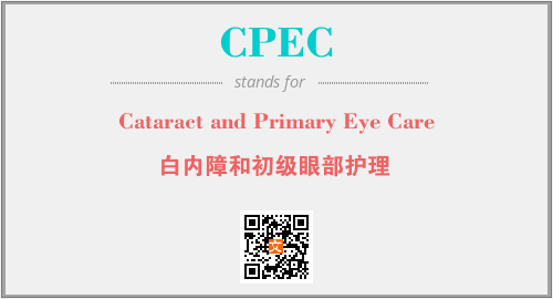 英文缩略词“CPEC”经常作为“Cataract and Primary Eye Care”的英文缩写来使用,中文表示:“白内障和初级眼部护理”。本文将详细介绍英文缩写词CPEC所代表英文单词,其对应的中文拼音、详细解释以及在英语中的流行度。此外,还有关于缩略词CPEC的分类、应用领域及相关应用示例等。
