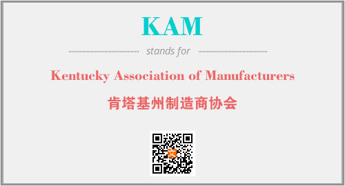 上述内容是“Kentucky Association of Manufacturers”作为“KAM”的缩写,解释为“肯塔基州制造商协会”时的信息,以及英文缩略词KAM所代表的英文单词,其对应的中文拼音、详细解释以及在英文中的流行度和相关分类、应用领域及应用示例等。