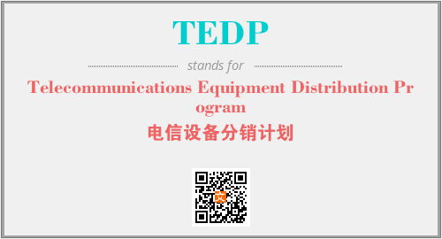 上述内容是“Telecommunications Equipment Distribution Program”作为“TEDP”的缩写,解释为“电信设备分销计划”时的信息,以及英文缩略词TEDP所代表的英文单词,其对应的中文拼音、详细解释以及在英文中的流行度和相关分类、应用领域及应用示例等。