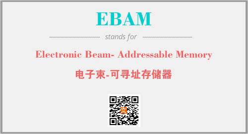 英文缩略词“EBAM”经常作为“Electronic Beam- Addressable Memory”的英文缩写来使用,中文表示:“电子束-可寻址存储器”。本文将详细介绍英文缩写词EBAM所代表英文单词,其对应的中文拼音、详细解释以及在英语中的流行度。此外,还有关于缩略词EBAM的分类、应用领域及相关应用示例等。
