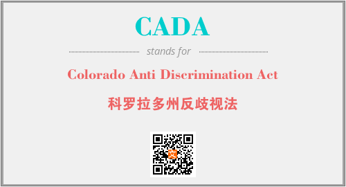 上述内容是“Colorado Anti Discrimination Act”作为“CADA”的缩写,解释为“科罗拉多州反歧视法”时的信息,以及英文缩略词CADA所代表的英文单词,其对应的中文拼音、详细解释以及在英文中的流行度和相关分类、应用领域及应用示例等。