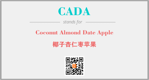上述内容是“Coconut Almond Date Apple”作为“CADA”的缩写,解释为“椰子杏仁枣苹果”时的信息,以及英文缩略词CADA所代表的英文单词,其对应的中文拼音、详细解释以及在英文中的流行度和相关分类、应用领域及应用示例等。