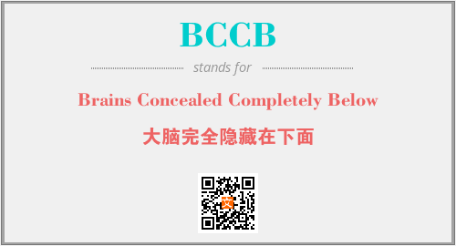 英文缩略词“BCCB”经常作为“Brains Concealed Completely Below”的英文缩写来使用,中文表示:“大脑完全隐藏在下面”。本文将详细介绍英文缩写词BCCB所代表英文单词,其对应的中文拼音、详细解释以及在英语中的流行度。此外,还有关于缩略词BCCB的分类、应用领域及相关应用示例等。