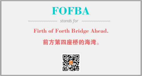 上述内容是“Firth of Forth Bridge Ahead.”作为“FOFBA”的缩写,解释为“前方第四座桥的海湾。”时的信息,以及英文缩略词FOFBA所代表的英文单词,其对应的中文拼音、详细解释以及在英文中的流行度和相关分类、应用领域及应用示例等。