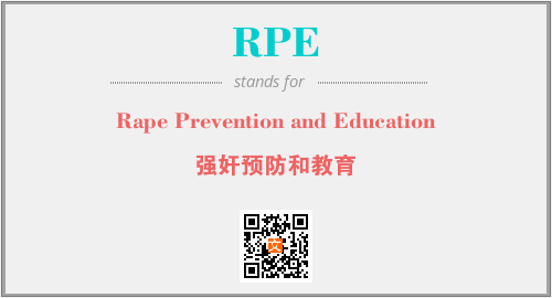 英文缩略词“RPE”经常作为“Rape Prevention and Education”的英文缩写来使用,中文表示:“强奸预防和教育”。本文将详细介绍英文缩写词RPE所代表英文单词,其对应的中文拼音、详细解释以及在英语中的流行度。此外,还有关于缩略词RPE的分类、应用领域及相关应用示例等。