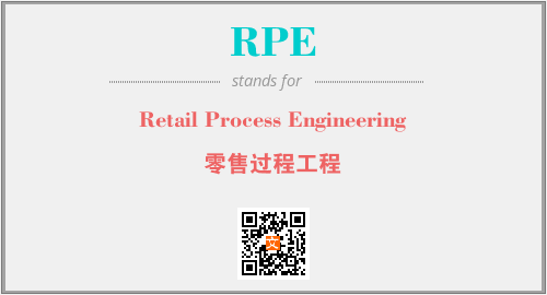 英文缩略词“RPE”经常作为“Retail Process Engineering”的英文缩写来使用,中文表示:“零售过程工程”。本文将详细介绍英文缩写词RPE所代表英文单词,其对应的中文拼音、详细解释以及在英语中的流行度。此外,还有关于缩略词RPE的分类、应用领域及相关应用示例等。