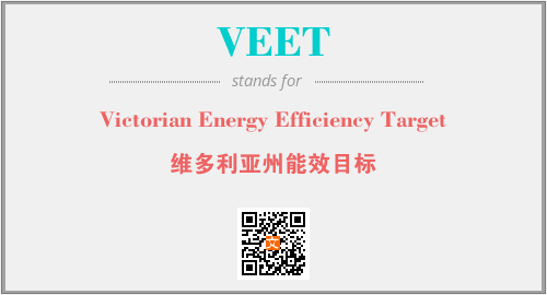 上述内容是“Victorian Energy Efficiency Target”作为“VEET”的缩写,解释为“维多利亚州能效目标”时的信息,以及英文缩略词VEET所代表的英文单词,其对应的中文拼音、详细解释以及在英文中的流行度和相关分类、应用领域及应用示例等。