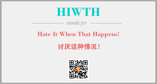 以上为Hate It When That Happens!英文缩略词HIWTH的中文解释,以及该英文缩写在英语的流行度、分类和应用领域方面的信息。