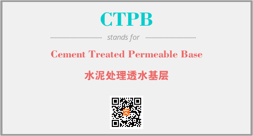 英文缩略词“CTPB”经常作为“Cement Treated Permeable Base”的英文缩写来使用,中文表示:“水泥处理透水基层”。本文将详细介绍英文缩写词CTPB所代表英文单词,其对应的中文拼音、详细解释以及在英语中的流行度。此外,还有关于缩略词CTPB的分类、应用领域及相关应用示例等。