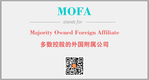 英文缩略词“MOFA”经常作为“Majority Owned Foreign Affiliate”的英文缩写来使用,中文表示:“多数控股的外国附属公司”。本文将详细介绍英文缩写词MOFA所代表英文单词,其对应的中文拼音、详细解释以及在英语中的流行度。此外,还有关于缩略词MOFA的分类、应用领域及相关应用示例等。