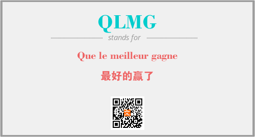 上述内容是“Que le meilleur gagne”作为“QLMG”的缩写,解释为“最好的赢了”时的信息,以及英文缩略词QLMG所代表的英文单词,其对应的中文拼音、详细解释以及在英文中的流行度和相关分类、应用领域及应用示例等。