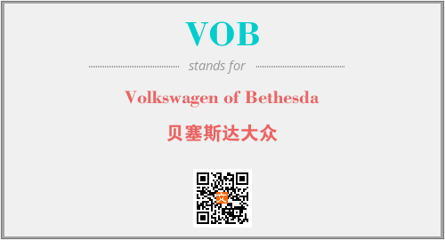 上述内容是“Volkswagen of Bethesda”作为“VOB”的缩写,解释为“贝塞斯达大众”时的信息,以及英文缩略词VOB所代表的英文单词,其对应的中文拼音、详细解释以及在英文中的流行度和相关分类、应用领域及应用示例等。