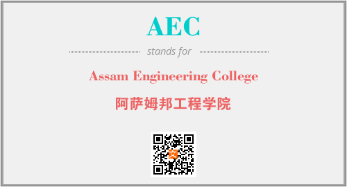 上述内容是“Assam Engineering College”作为“AEC”的缩写,解释为“阿萨姆邦工程学院”时的信息,以及英文缩略词AEC所代表的英文单词,其对应的中文拼音、详细解释以及在英文中的流行度和相关分类、应用领域及应用示例等。