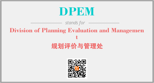 上述内容是“Division of Planning Evaluation and Management”作为“DPEM”的缩写,解释为“规划评价与管理处”时的信息,以及英文缩略词DPEM所代表的英文单词,其对应的中文拼音、详细解释以及在英文中的流行度和相关分类、应用领域及应用示例等。
