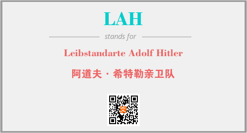 以上为Leibstandarte Adolf Hitler英文缩略词LAH的中文解释,以及该英文缩写在英语的流行度、分类和应用领域方面的信息。