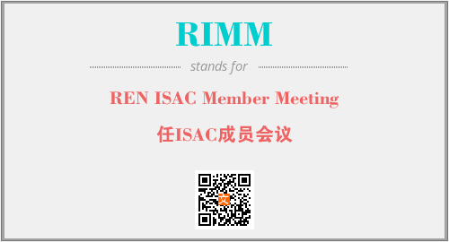 上述内容是“REN ISAC Member Meeting”作为“RIMM”的缩写,解释为“任ISAC成员会议”时的信息,以及英文缩略词RIMM所代表的英文单词,其对应的中文拼音、详细解释以及在英文中的流行度和相关分类、应用领域及应用示例等。
