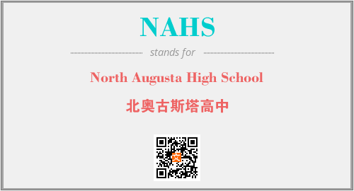 英文缩略词“NAHS”经常作为“North Augusta High School”的英文缩写来使用,中文表示:“北奥古斯塔高中”。本文将详细介绍英文缩写词NAHS所代表英文单词,其对应的中文拼音、详细解释以及在英语中的流行度。此外,还有关于缩略词NAHS的分类、应用领域及相关应用示例等。