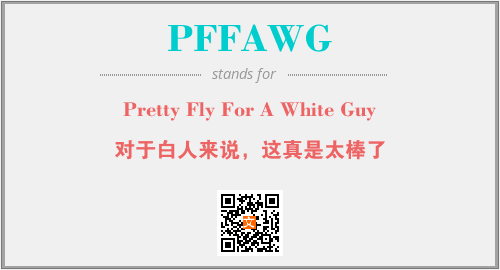 以上为Pretty Fly For A White Guy英文缩略词PFFAWG的中文解释,以及该英文缩写在英语的流行度、分类和应用领域方面的信息。