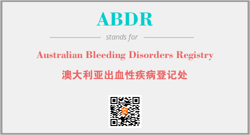 上述内容是“Australian Bleeding Disorders Registry”作为“ABDR”的缩写,解释为“澳大利亚出血性疾病登记处”时的信息,以及英文缩略词ABDR所代表的英文单词,其对应的中文拼音、详细解释以及在英文中的流行度和相关分类、应用领域及应用示例等。