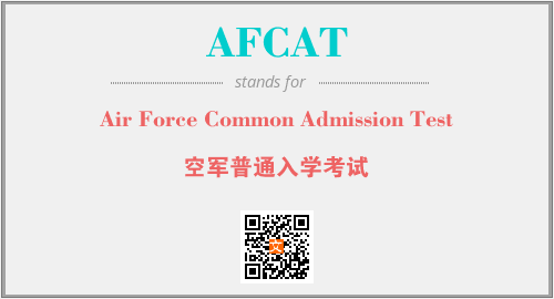 英文缩略词“AFCAT”经常作为“Air Force Common Admission Test”的英文缩写来使用,中文表示:“空军普通入学考试”。本文将详细介绍英文缩写词AFCAT所代表英文单词,其对应的中文拼音、详细解释以及在英语中的流行度。此外,还有关于缩略词AFCAT的分类、应用领域及相关应用示例等。