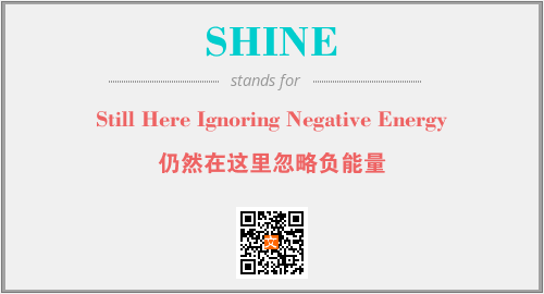 以上为Still Here Ignoring Negative Energy英文缩略词SHINE的中文解释,以及该英文缩写在英语的流行度、分类和应用领域方面的信息。