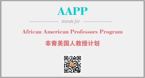 以上为African American Professors Program英文缩略词AAPP的中文解释,以及该英文缩写在英语的流行度、分类和应用领域方面的信息。