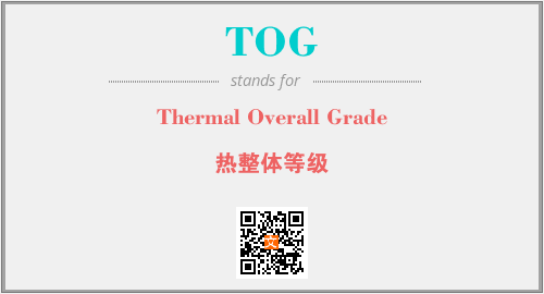 以上为Thermal Overall Grade英文缩略词TOG的中文解释,以及该英文缩写在英语的流行度、分类和应用领域方面的信息。