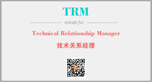 英文缩略词“TRM”经常作为“Technical Relationship Manager”的英文缩写来使用,中文表示:“技术关系经理”。本文将详细介绍英文缩写词TRM所代表英文单词,其对应的中文拼音、详细解释以及在英语中的流行度。此外,还有关于缩略词TRM的分类、应用领域及相关应用示例等。