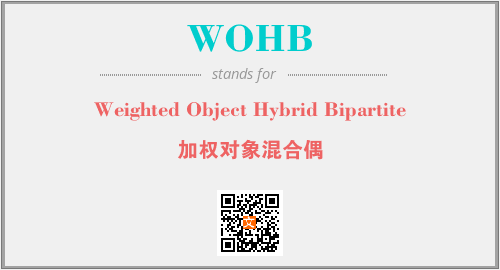 上述内容是“Weighted Object Hybrid Bipartite”作为“WOHB”的缩写,解释为“加权对象混合偶”时的信息,以及英文缩略词WOHB所代表的英文单词,其对应的中文拼音、详细解释以及在英文中的流行度和相关分类、应用领域及应用示例等。