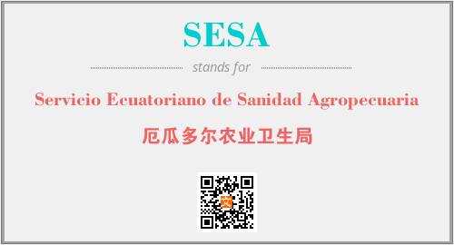 上述内容是“Servicio Ecuatoriano de Sanidad Agropecuaria”作为“SESA”的缩写,解释为“厄瓜多尔农业卫生局”时的信息,以及英文缩略词SESA所代表的英文单词,其对应的中文拼音、详细解释以及在英文中的流行度和相关分类、应用领域及应用示例等。