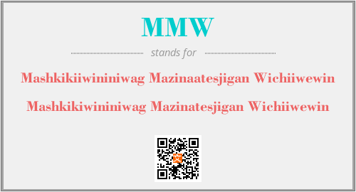 以上为Mashkikiiwininiwag Mazinaatesjigan Wichiiwewin英文缩略词MMW的中文解释,以及该英文缩写在英语的流行度、分类和应用领域方面的信息。