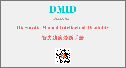 上述内容是“Diagnostic Manual Intellectual Disability”作为“DMID”的缩写,解释为“智力残疾诊断手册”时的信息,以及英文缩略词DMID所代表的英文单词,其对应的中文拼音、详细解释以及在英文中的流行度和相关分类、应用领域及应用示例等。