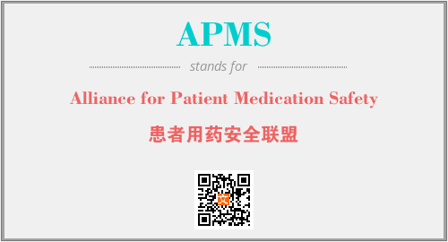 上述内容是“Alliance for Patient Medication Safety”作为“APMS”的缩写,解释为“患者用药安全联盟”时的信息,以及英文缩略词APMS所代表的英文单词,其对应的中文拼音、详细解释以及在英文中的流行度和相关分类、应用领域及应用示例等。