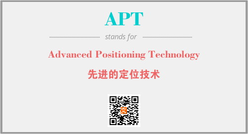 以上为Advanced Positioning Technology英文缩略词APT的中文解释,以及该英文缩写在英语的流行度、分类和应用领域方面的信息。