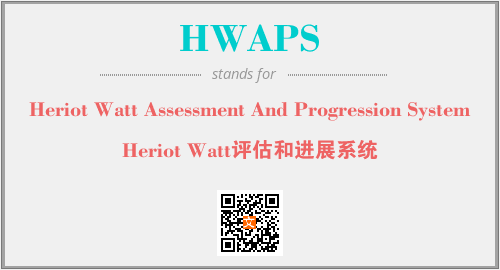 上述内容是“Heriot Watt Assessment And Progression System”作为“HWAPS”的缩写,解释为“Heriot Watt评估和进展系统”时的信息,以及英文缩略词HWAPS所代表的英文单词,其对应的中文拼音、详细解释以及在英文中的流行度和相关分类、应用领域及应用示例等。